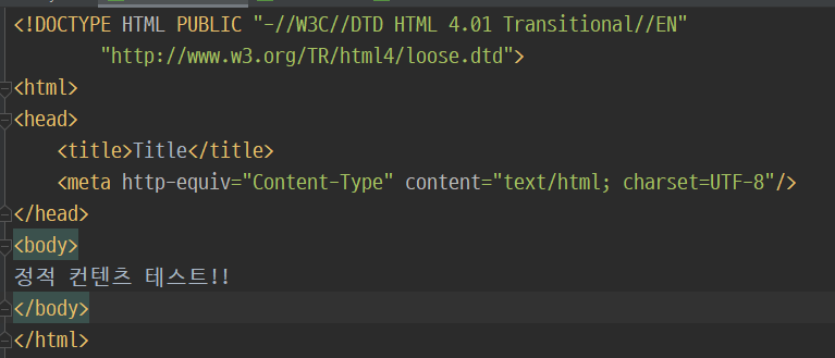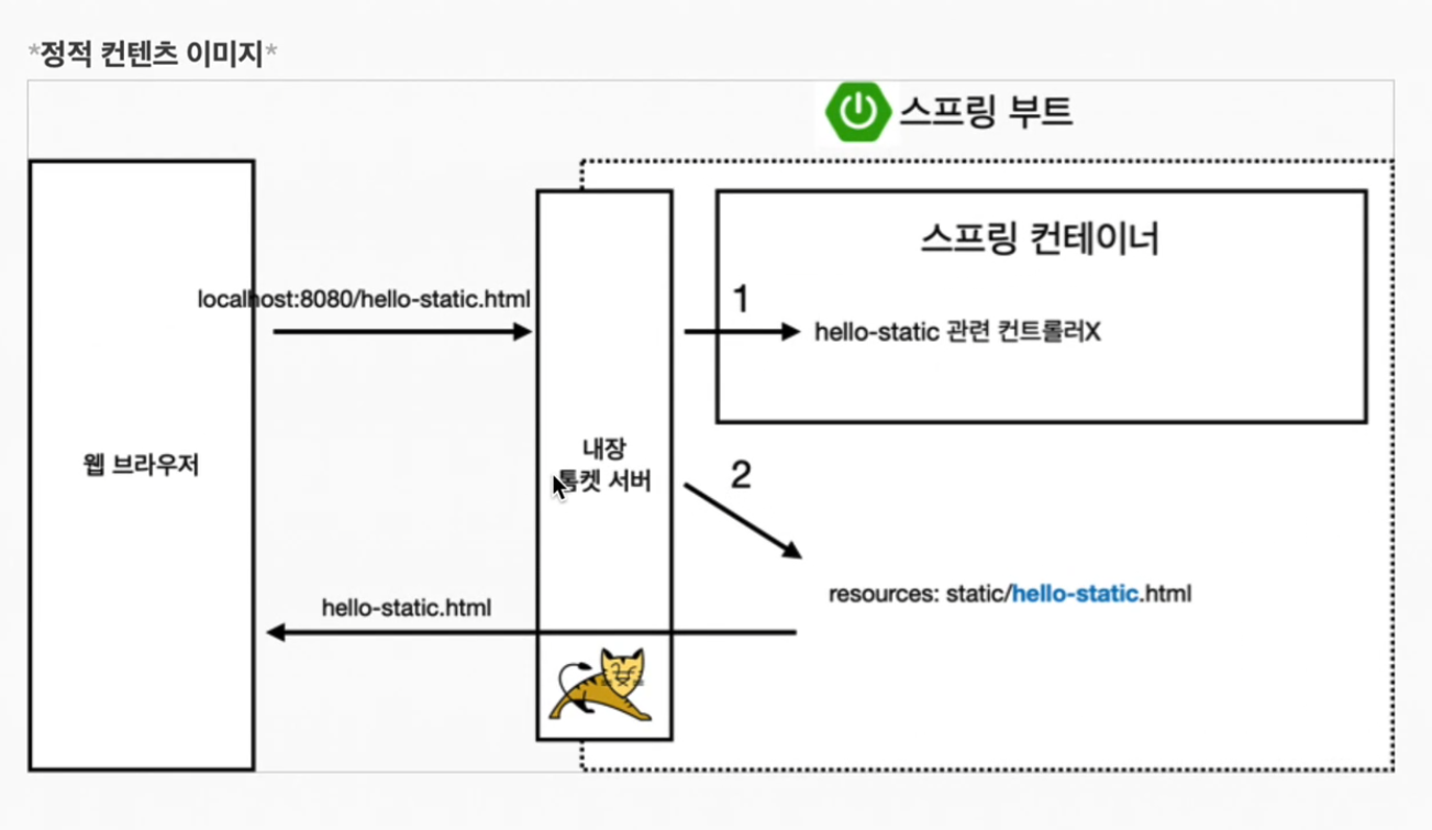 1. 웹브라우저에서 localhost:8080 주소에 hello-static.html파일을 요청
