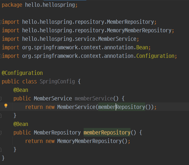 이렇게 MemberService에 해당하는 스프링 빈으로 등록해주면,