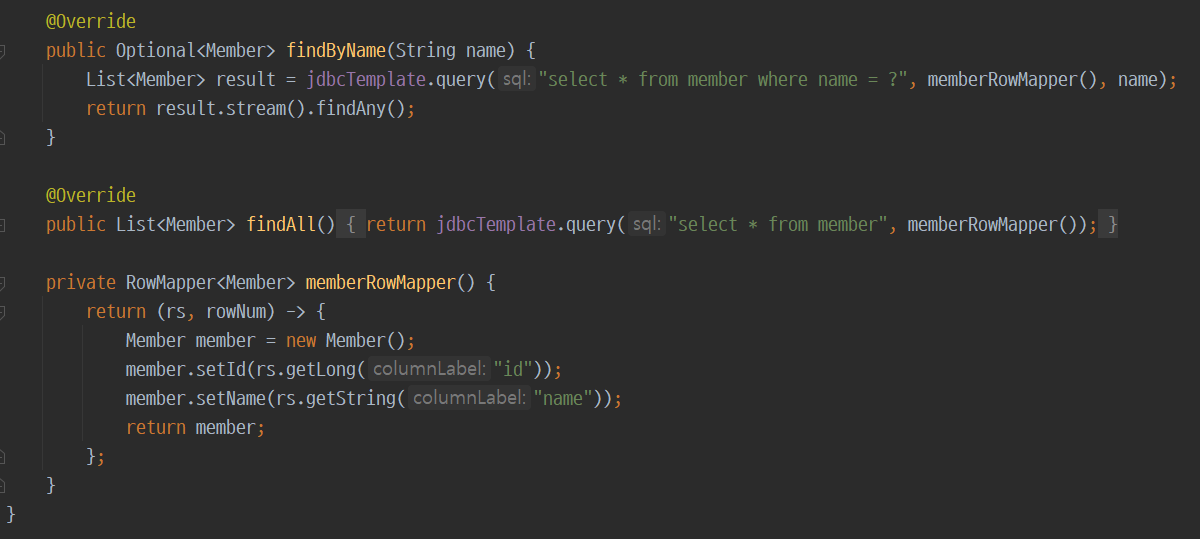 import hello.hellospring.repository.JdbcTemplateMemberRepository;
