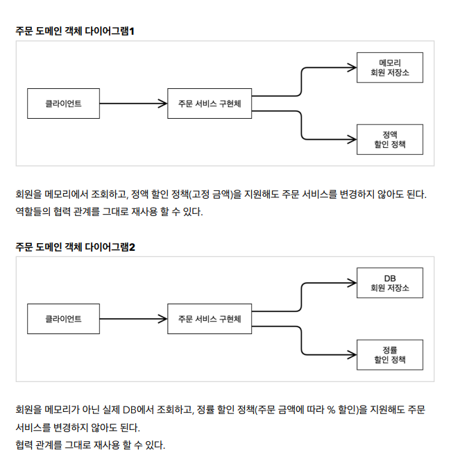 해당 설계는 꽤 괜찮은 설계이다. 할인 정책이나, 주문자의 회원조회 등의 기능들이 변경되더라도